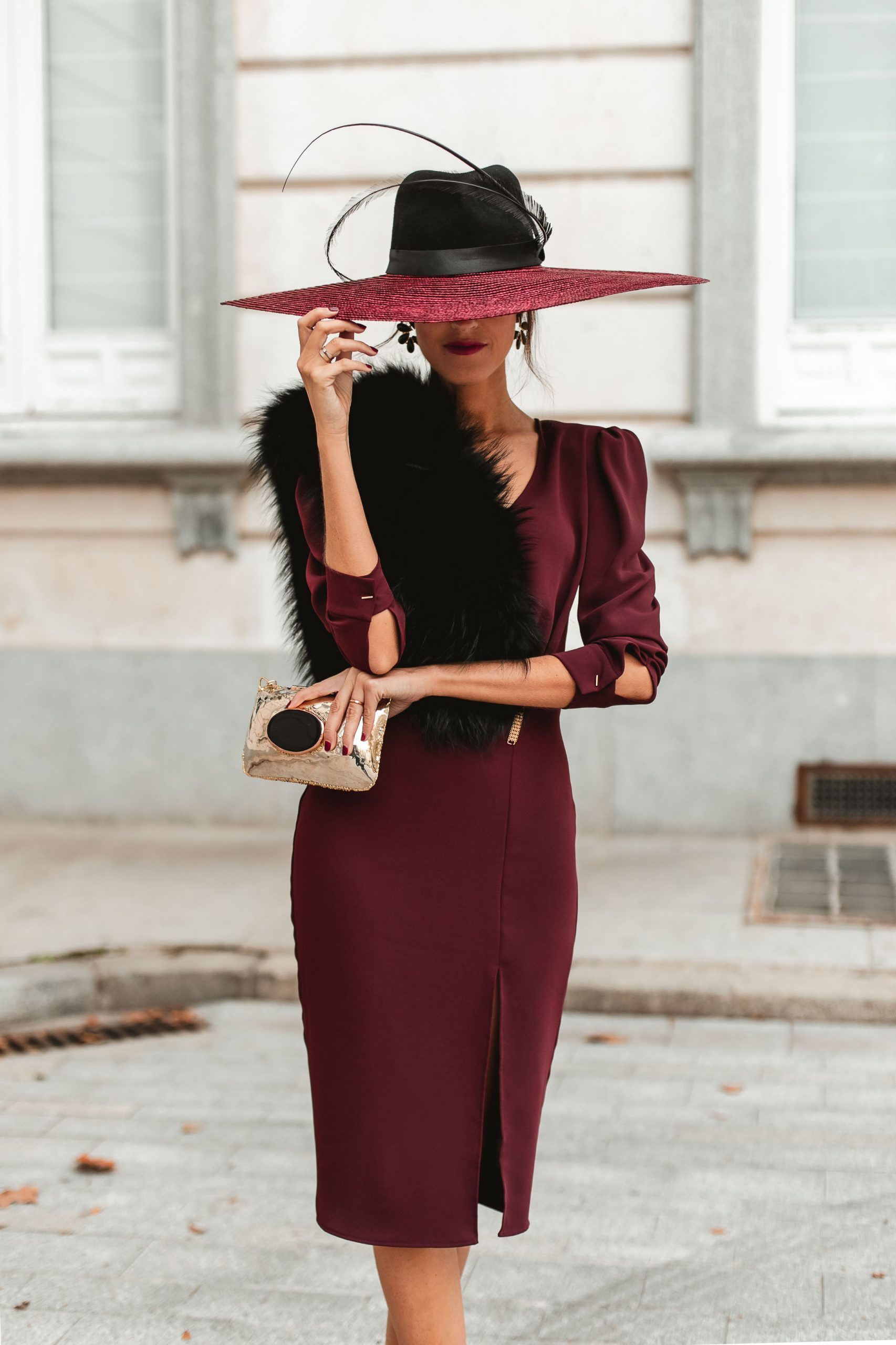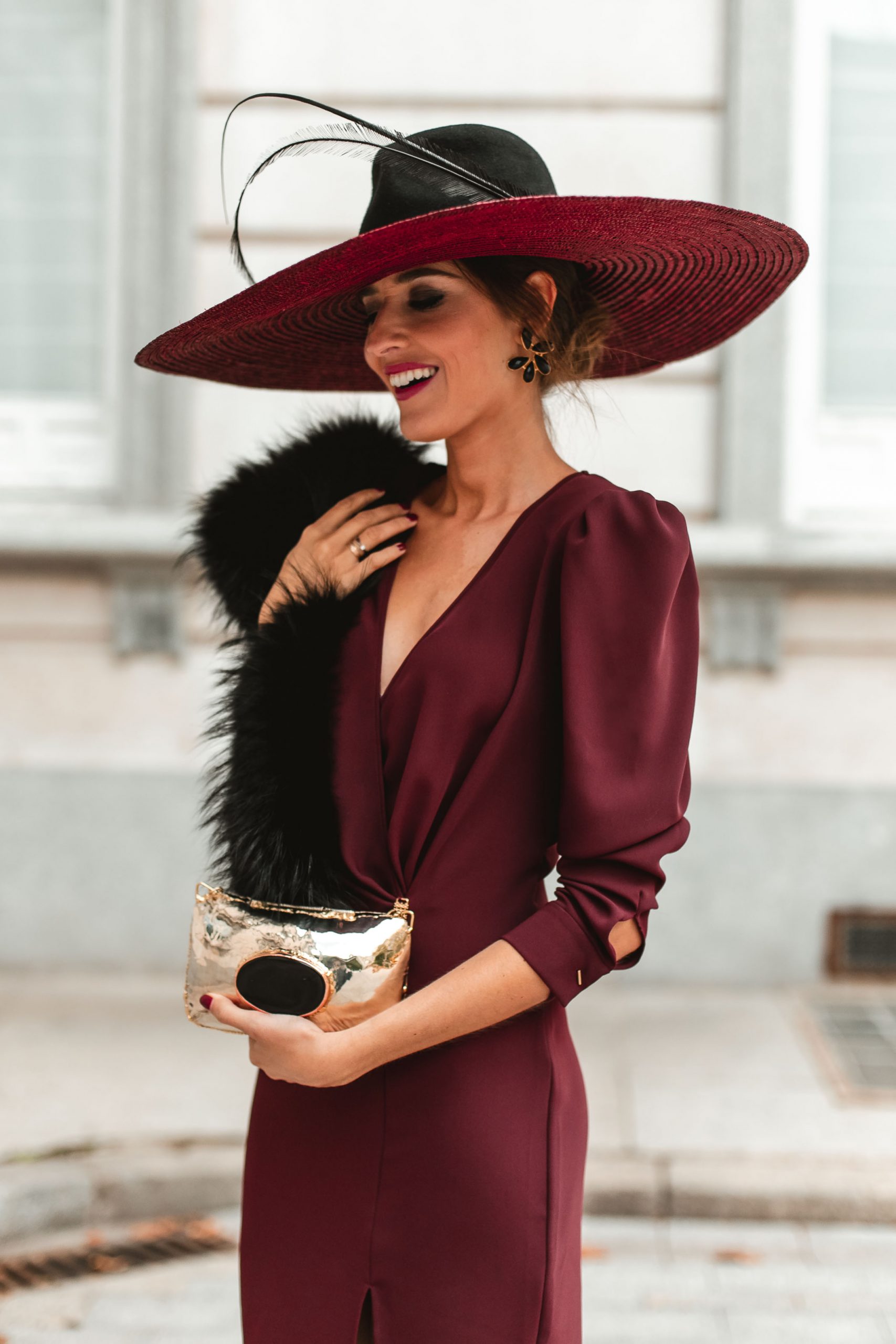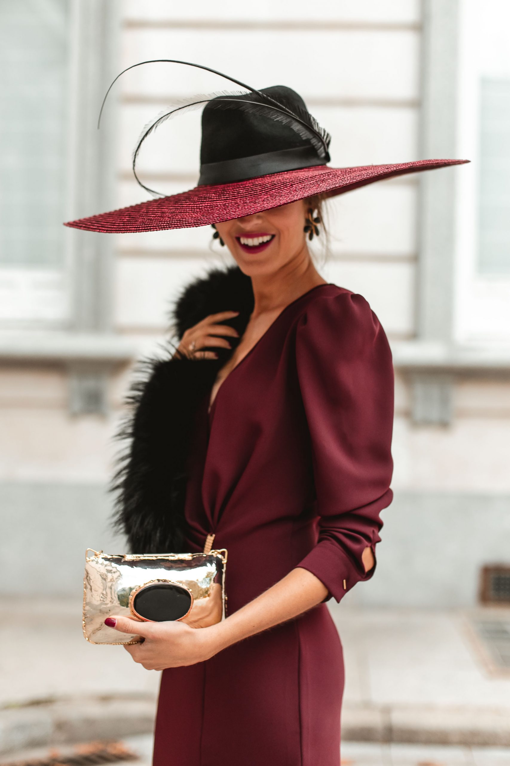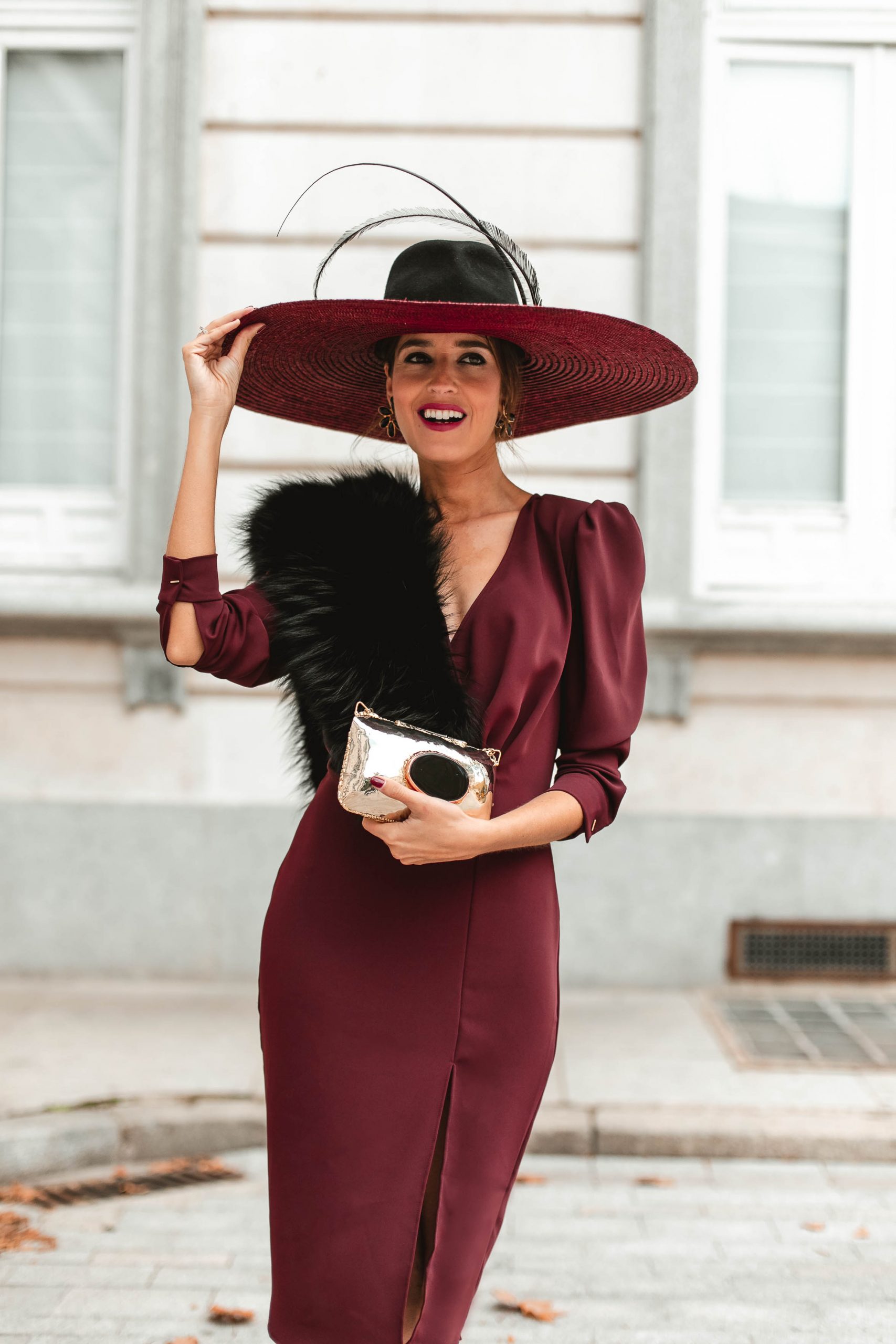 Ya sabéis que las estolas nos parecen muy favorecedoras en esta época del año y dan al look un toque muy sofisticado. La que lleva Sandra es de Mokita Spain que combina con una pamela XL de Artipistilos, pendientes de Acus Complementos y zapatos de Carrano.